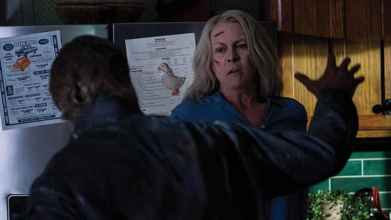 Horrible dialogue makes it almost impossible to fully invest in the film. I know it’s a trope that horror films have bad dialogue, but this is on another level. Worse than “Somehow Palpatine returned.” On multiple occasions, characters let out exposition that’s helpful for the audience to understand, but would never be said in a real-life setting. One moment sees a new character Corey, legitimately sneak up on Laurie and then says, “Sorry, I didn’t mean to scare you.” It wasn’t meant for a joke or anything like that, my guy literally snuck up behind someone, made them jump out of fear, and saw nothing wrong with it. There’s this one part where Laurie is talking to Corey’s parents, and his mom has this really long line and it’s full of unmemorable exposition, a question the in middle, and then her statement on Myers, to which Laurie responds with, “Yes.”